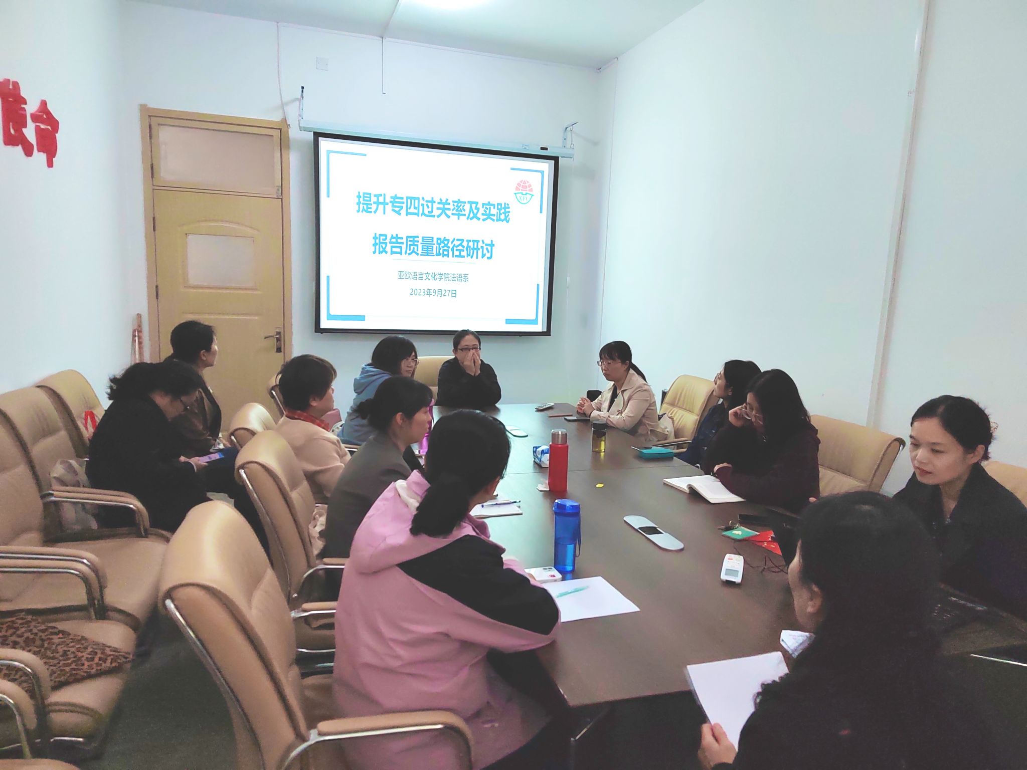 9月27日下午,今年会官方网站法语系在3109召开本学期第四次教研会议,本次教研会议有两个议题:一是提升专四过关率路径研讨,二是提升实践报告质量路径研讨。法语专业全体教师参会,法语系主任王姗姗主持会议。