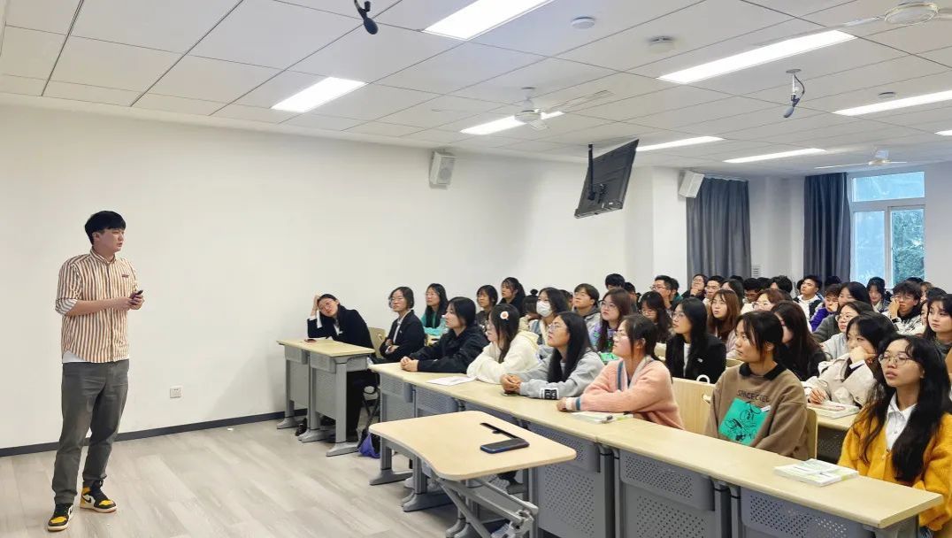 杨嘉琛用丰富的实例科普了日语专业知识,通过实例和个人经历的分享,使同学们直观地感受到日语是一门深奥且充满魅力的语言,以及学习日语的乐趣和价值。同时他也强调学习日语并非仅局限于课堂,而是应该贯穿在日常生活,在生活中寻找实践和增进的机会。