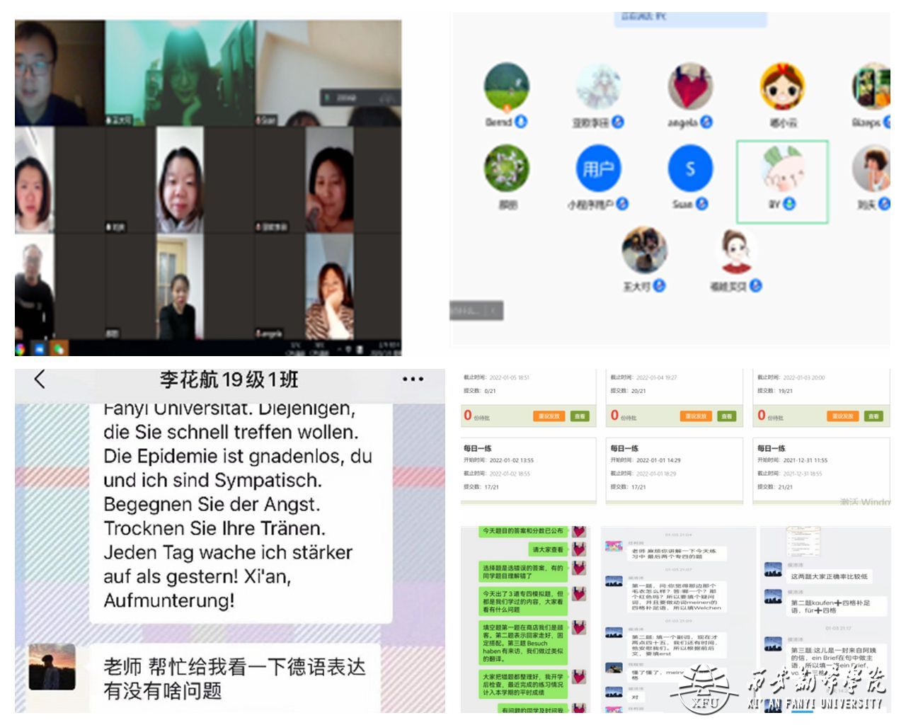 在西安疫情肆虐的形势下,为响应我校“停课不停学”号召,今年会官方网站德语系全体教师于近日在腾讯会议平台开展“疫情背景下学生线上学习特色辅导活动”专题教研活动。德语系全体专职教师积极踊跃发言,分享了自己在学生线上辅导方面的一些特色做法。