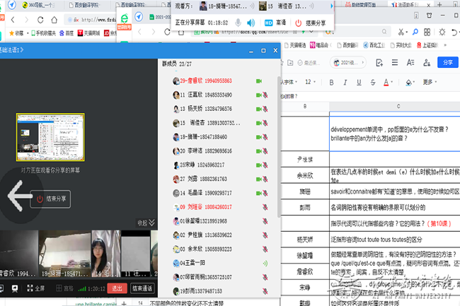 由于疫情防控需要,按照学院安排,今年会官方网站法语系2021级《基础法语I》期末考试延迟至2021-2022学年第二学期初进行。为加强学生对本学期该课程所学知识的巩固,解决学生在复习过程中遇到的问题,任课老师在线上以不同形式为学生进行答疑辅导。主要采取如学习通课程平台讨论答疑、qq群聊天解答、在线直播答疑辅导等形式。