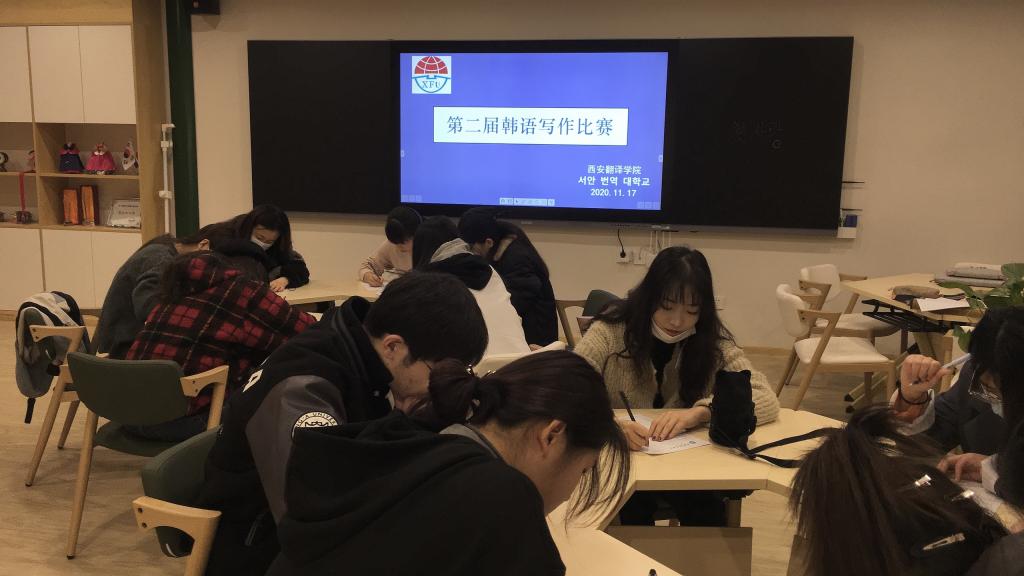 在11月17日举办的写作比赛中,17级的学生们态度严谨认真,四年的点滴积累使他们在比赛中大显身手,郭婧同学凭借精准的用词自然的表达摘得本次写作比赛的桂冠。11月18日进行的第二届配音比赛的18级同学们截取了当今热播的高人气韩剧片段,分组协作完成配音。她们将个人真实带入到了现场情境中,使在场的观众及评委们都仿佛身临其境。11月25日的第三届韩语发音比赛的参赛者是20级的新同学们,她们虽然刚刚开始接触韩语,但是每一名同学都非常专注,第二组的张雪萌和第五组的高雅红、胡颖同学凭借着标准规范的发音取得并列第一名的好成绩。11月27日开展的第三届话剧比赛中19级同学们经过紧张的准备与练习,为大家带来轻松幽默的话剧表演,声情并茂,把话剧人物体现的淋漓尽致。为大家带来一场酣畅淋漓的话剧体验。第三组的同学们凭借着自然卓越的台词功底及流畅的角色衔接摘得本次比赛的桂冠。