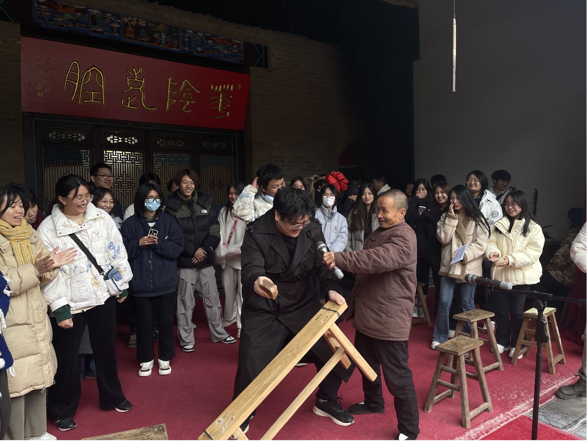 实习过程中,同学们在感悟传统历史文化的同时,学习相关日语讲解词,同时收集了景区的公示语,并进行中译日练习。同学们利用此次机会提高在实际场景中使用日语的能力,并更深入地了解和掌握相关的专业知识。这样的学习方式有助于培养学生们的语言运用能力并加深对民俗艺术的认识。此外,同学们还欣赏了非物质文化遗产——“老腔”的表演,并亲身上台体验老腔的魅力,从中深刻感受到中国文化历史的厚重。这样的体验不仅可以增进对民俗艺术的理解,还能培养对自己文化传统的认同感和尊重。