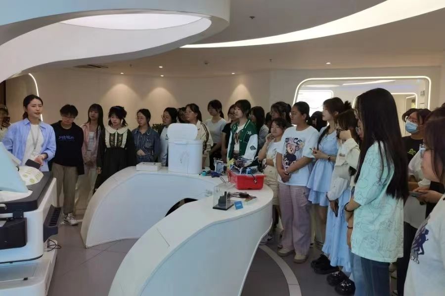 在了解完人工智能和企业的发展之后,工作人员带领下学生们参观了科大讯飞的人工智能体验中心。这里陈列着科大讯飞近年来的创新成果,学生们纷纷驻足观看,亲身感受这些产品带来的便捷与智能。工作人员为学生们详细介绍了科大讯飞在语音合成、语音撰写、机器翻译、智慧医疗、智慧教育等领域的技术突破和创新成果。随后工作人员介绍了讯飞星火开放平台及讯飞星火大模型的应用,学生对人工智能创新创业现状和就业前景有了深刻认识。