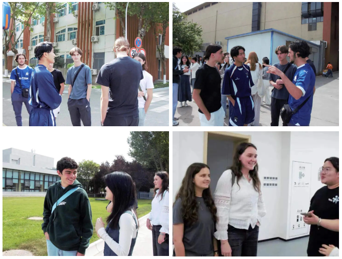 到校后,法语系学生热情接待了来访法国学生,采取“结对子”形式,让中法两国的学生能够更加深入地进行组队互动交流,共同参与一系列的学习和文化体验活动。