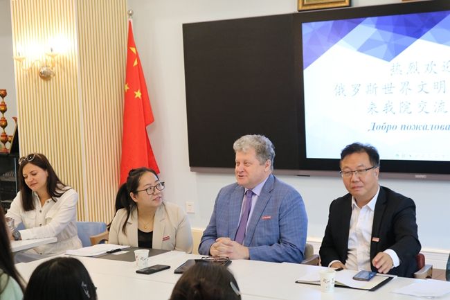 尼古拉耶维奇介绍了世界文明大学的历史及概况,并就中国留学生的学习学业及日常生活情况作了特别说明。他表示,世界文明大学会为同学们创造良好的学习环境。他鼓励同学们到世界文明大学进行交换学习,亲身体验留学生活,感受俄罗斯文化魅力。
