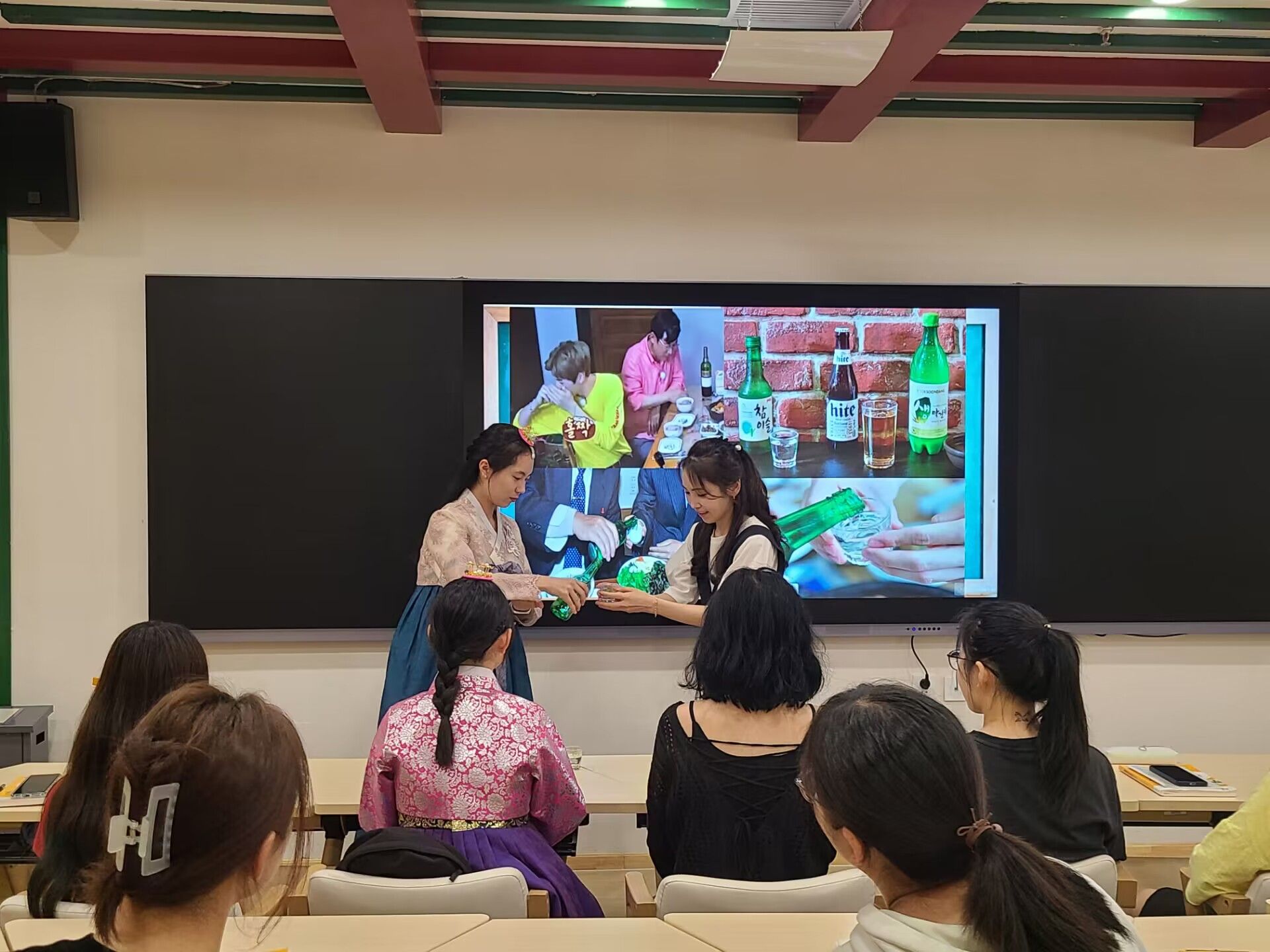 通过此次讲座,学生切身体会到了韩国传统服饰、饮食文化、民俗乐器的独特韵味,提高了学习韩语的兴趣。