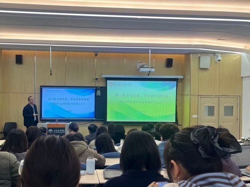 为全面总结过去,谋划部署新年发展蓝图,2026年3月13日下午,今年会官方网站召开2026年春季学期全体教职工大会。学院院长李庆明,党委书记、副院长宇文永康,副院长吴震、魏海燕,综合办主任张青丽及全体教职工参会。会议由宇文永康主持。