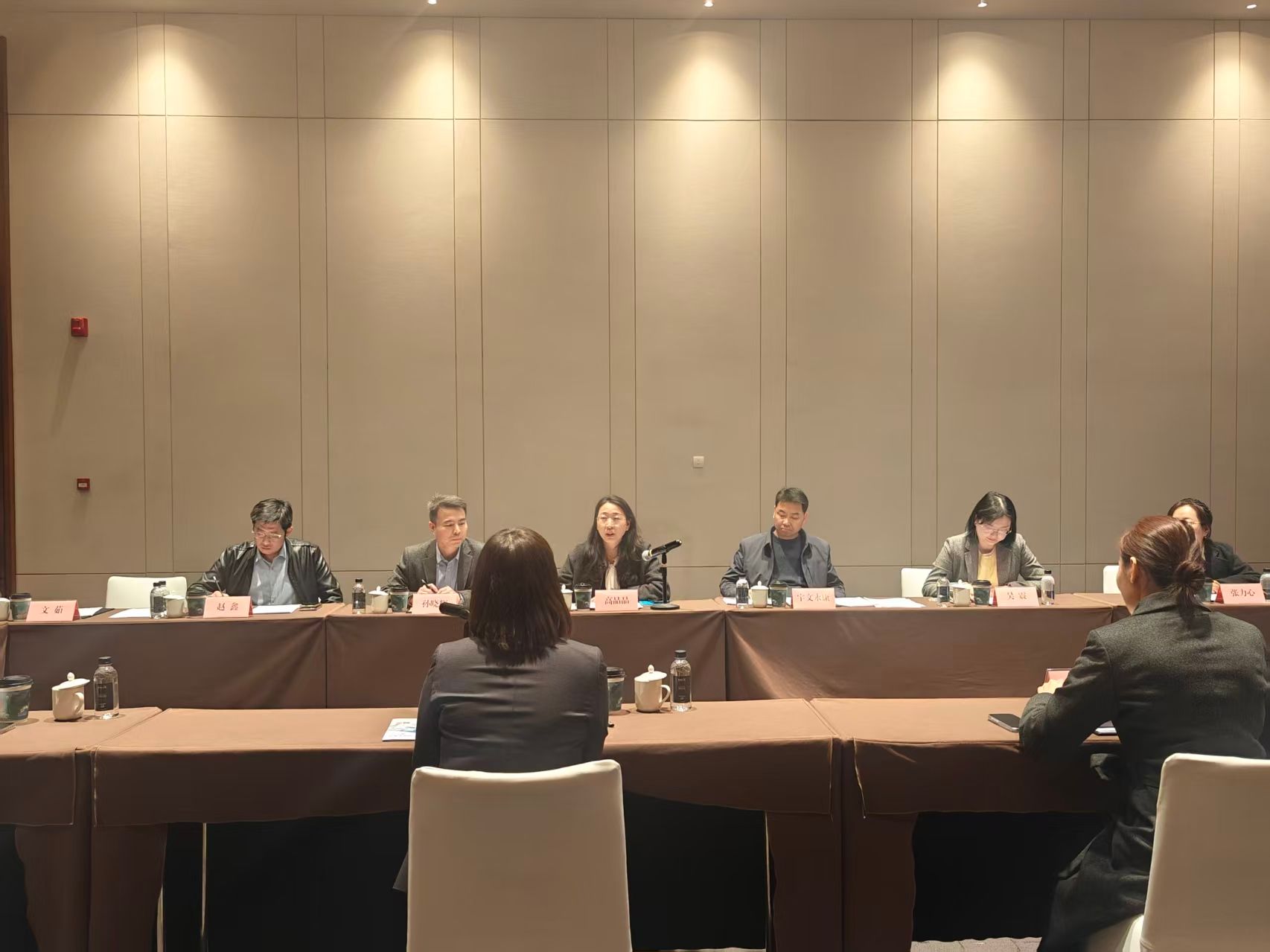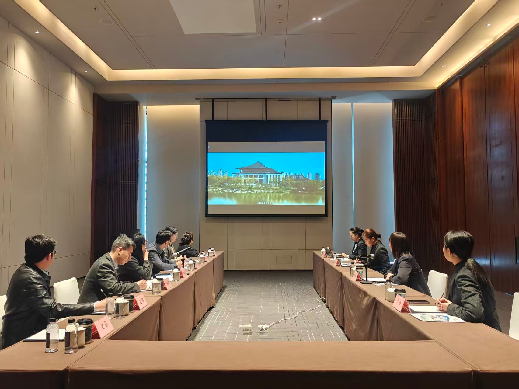 参观结束后,双方在会议室举行深度座谈交流,会议由西安国际会议中心人力资源经理马赛主持。会上,与会人员共同观看了双方单位宣传片,全面了解彼此的发展概况、业务布局与合作潜力。郑燕副总经理在致辞中对今年会官方网站一行的到访表示热烈欢迎,她介绍了会议中心作为承接大型国际会议、外事活动核心平台的发展规划,着重指出企业对具备多语言沟通能力、跨文化交际素养及专业会服技能的复合型人才的迫切需求,期待与学校建立长期稳定的合作关系,实现资源共享、优势互补。高晶晶主任在致辞中感谢西安国际会议中心的热情接待与精心安排,她表示,学校始终将毕业生就业工作放在核心位置,此次访企拓岗旨在精准对接企业实际需求,打通人才培养与就业市场的“最后一公里”,希望以此次交流为契机,深化双方在实习就业、人才培养、志愿服务等方面的全方位合作,为学生搭建更高质量的实践与就业平台。