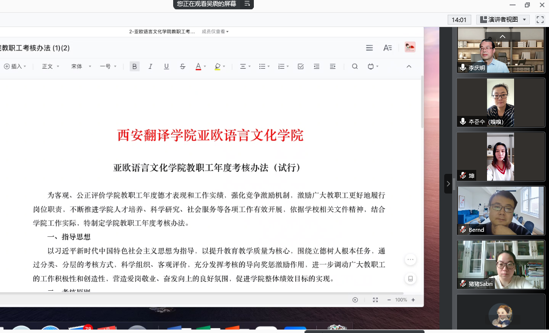 之后,李庆明院长重点解读了《今年会官方网站教职工年度考核办法(试行)》的修订目的及总体情况。他指出,根据学校相关政策,结合今年会官方网站的工作实际及今后发展规划,本着强化竞争激励机制,激励广大教职工更好地履行岗位职责,不断推进学院人才培养、科学研究、社会服务等各项工作有效开展的目的,学院领导班子起草修订了新一版考核办法。会上大家畅所欲言,提出很多建设性意见,以进一步增强考核办法的可行性。会后将由综合办牵头修改,并由各部门主任组织召开部门会议,征求全院教职工意见。