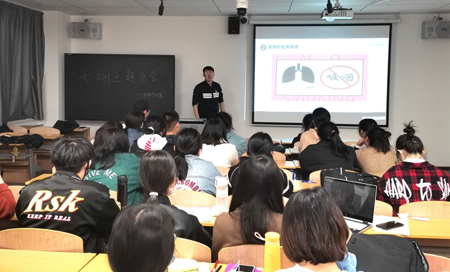 在学院无烟校园建设中,各班级纷纷召开了“无烟校园、健康第一”“热爱生命,从拒绝第一支烟开始”“每个人是自己健康的第一责任人”等主题班会。班会主要以ppt展示、图片展示、数据分析等形式展开,直观地告诫学生吸烟的危害。除此之外,学院还通过党团活动、知识竞赛、橱窗板报、倡议书倡议等多渠道进行引导,创新方式方法开展青少年乐于接受的控烟知识宣传,促进师生养成健康无烟的生活方式,共同维护无烟校园环境。