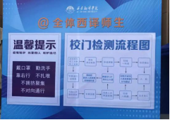 校区内贴满了行走路线,提示牌等,只为学生返校后,给学生提供安全感,能有效,安心的适应校园生活。