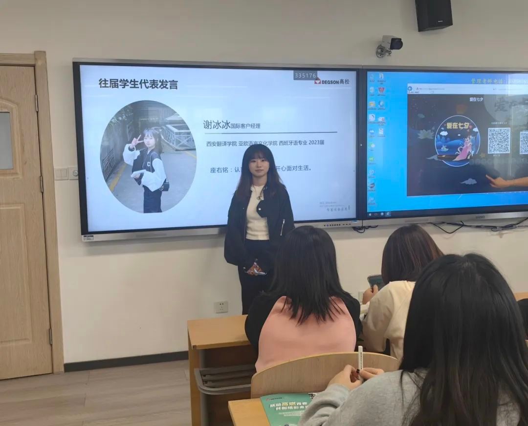 校大学生就业创业服务指导中心副主任赵东良简要介绍了该单位情况,随后,学院2023届优秀毕业生、宁波高松国际销售工程师谢冰冰进行宣讲,使学生对用人单位基本情况有了更直观深入地了解。