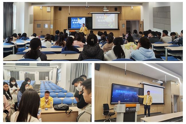 黄浩讲述了自己在西译的上学经历以及求职历程。他提醒同学们在校期间须不断提升专业能力,考取证书,多参加比赛、社团活动等,有机会还可以参加学校的出国交流学习项目,开阔视野,增长见识。他还介绍了自己通过不懈努力和刻苦钻研并最终成长为公司主要负责人的经历。他强调,踏实努力的态度、丰富的学识、扎实的能力是一生的财富。拥有这些品质的应聘者更易受到招聘单位青睐。他鼓励大家务必养成良好的学习习惯,树立信心,珍惜青春韶华,努力学习,利用假期参加实习实践,尽早确定未来的发展方向,并为之不懈奋斗。
