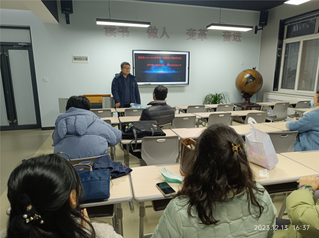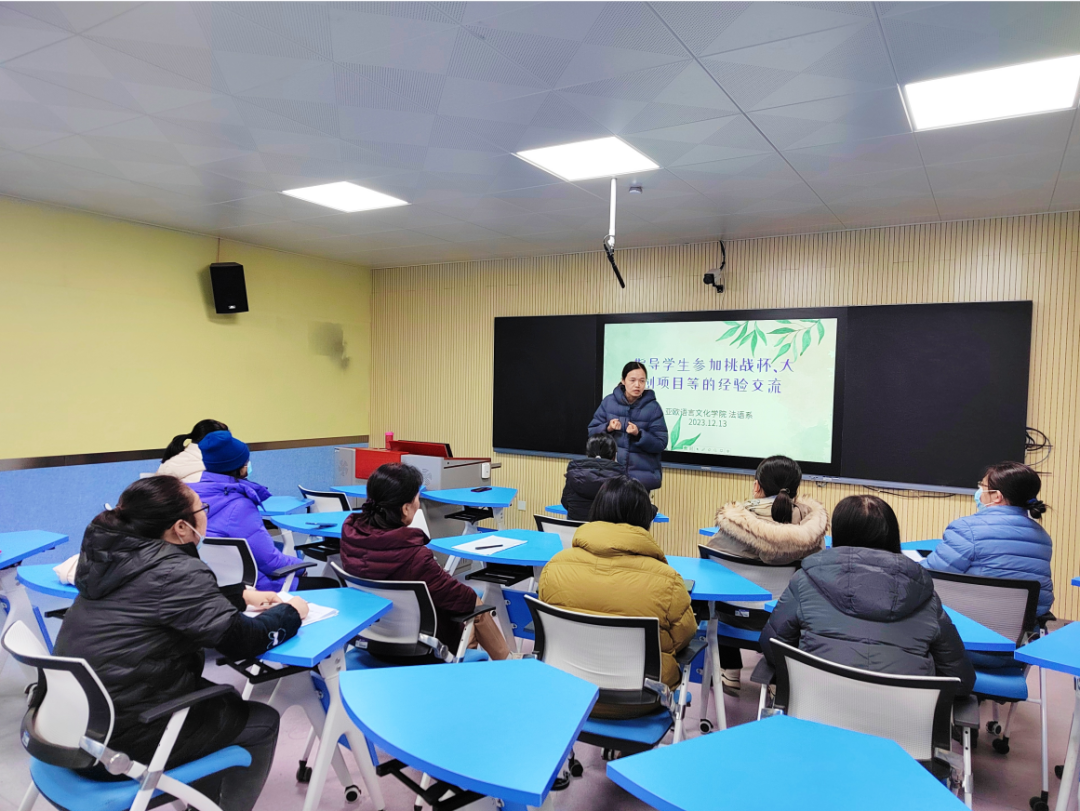 之后,与会教师们就项目选题、材料撰写、路演答辩等方面进行了深入的讨论。通过具体案例,对于如何在创新创业竞赛中更好地展现语言优势与文化理解有了更深的认识。