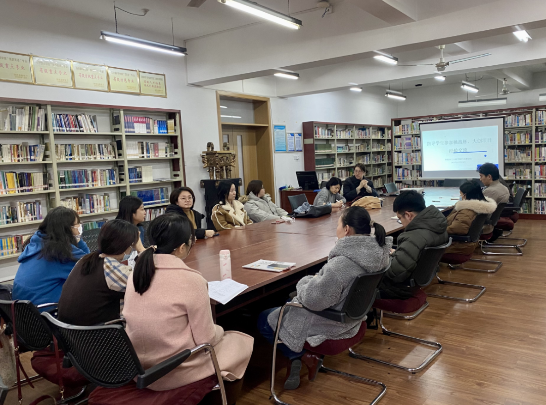 交流会上,首先由指导过学生参加挑战杯、大创项目等竞赛并取得优异成绩的几位教师分享经验和做法。教师们从赛事分类、项目来源、团队组建、指导学生实施项目与撰写、项目计划书的修改、答辩注意事项及结题论文发表等方面提供了宝贵的指导经验。