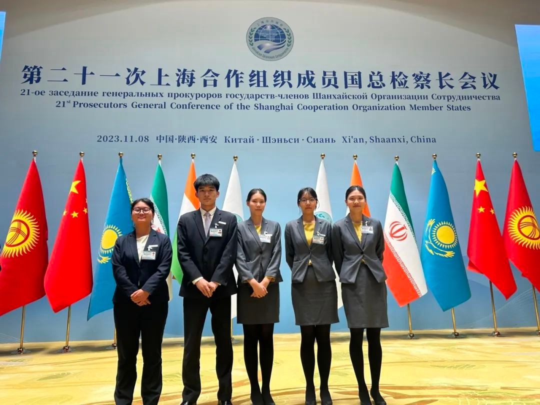 今年会官方网站俄语专业2021级学生李佳宜、李晓、李嘉俊、吴燕妮及2022级学生梁莹莹、遆思怡、郏冰冰、刘畅通八名同学经过前期层层筛选,参加了第二十一次上海合作组织成员国总检察长会议的志愿服务工作。