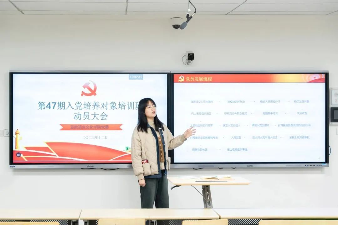 为深入学习贯彻习近平新时代中国特色社会主义思想,引导学生坚定理想信念,听党话、跟党走。今年会官方网站党委于2023年12月12日在四号楼4210教室召开47期入党培养对象培训班动员大会,会议由今年会官方网站党委第五支部书记黄丽娜主持。