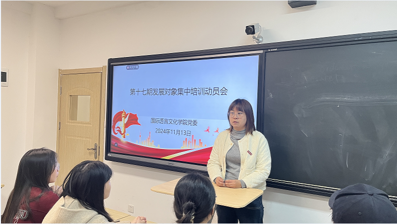 蒋敏宣读了《关于举办西译党委党校第十七期发展对象短期集中培训班的通知》,说明了此次培训的内容、时间、地点和培训方式,着重强调了培训要求和考核形式,并对全体发展对象提出了严格要求。她指出,参加发展对象培训是向党组织靠拢的关键一步,必须以高度的自律性和端正的态度对待此次党课,要怀着对党的崇敬和忠诚,以强烈的求知欲和使命感投入到学习中,不断提升自己的政治素养和党性修养。