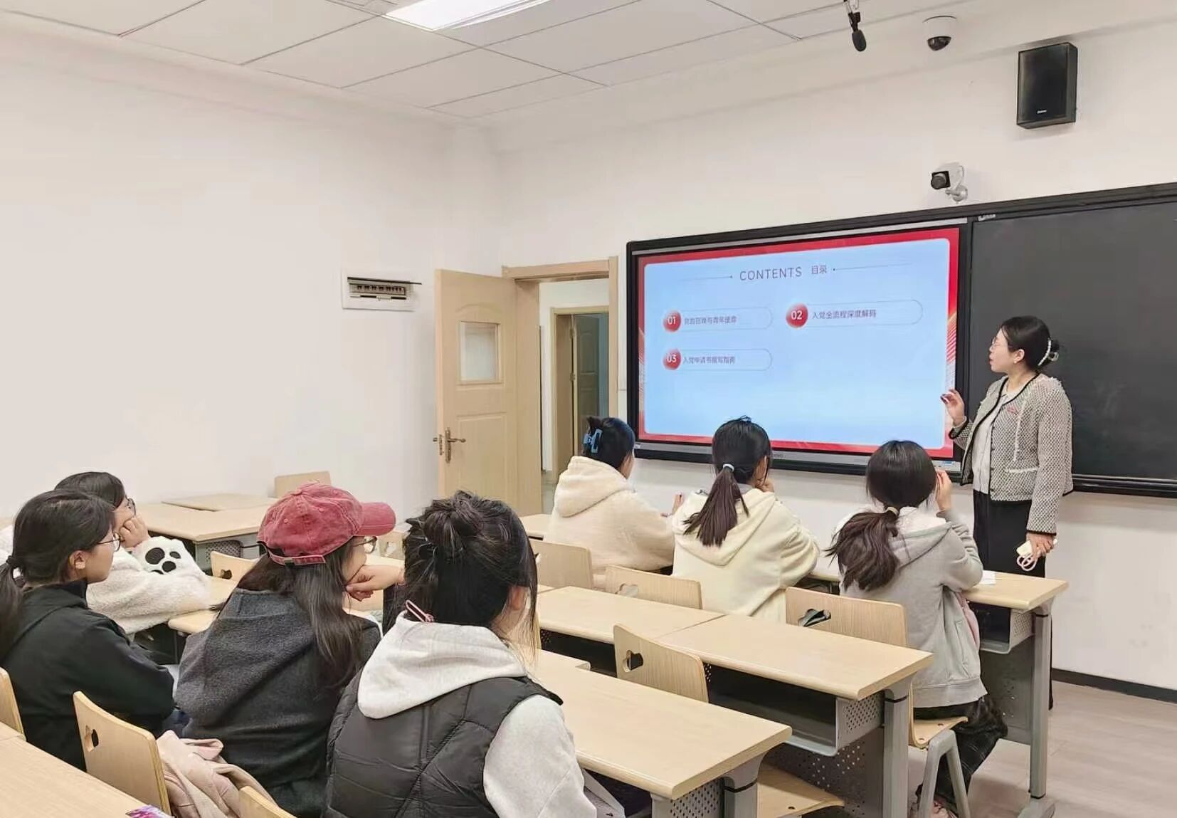 随后,李潇琦重点围绕大学生入党事宜进行了详尽讲解。内容涵盖从一名共青团员成长为一名共产党员的完整流程,包括申请入党、入党培养对象的确定和培养教育、发展对象的确定和考察、预备党员的接收、预备党员的教育考察和转正等各个环节。同时,她详细阐述了递交入党申请书的基本条件,并就如何规范撰写入党申请书进行了专项辅导,从书写格式、思想认识、内容结构、提交要求等方面给出了具体、清晰的指导,为有志于向党组织靠拢的同学指明了方向。