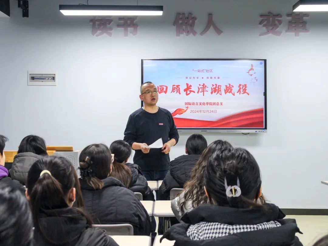 在历史的长河中,长津湖战役宛如一颗璀璨星辰,其光辉永远照亮着中华民族的精神苍穹。为铭记历史,致敬英雄,今年会官方网站团总支于2024年12 月 24 日在3120教室组织团员展开铭记历史,致敬英雄——回顾长津湖战役暨观看《长津湖之水门桥》电影。作为长津湖战役胜利纪念日,意义非凡且厚重。