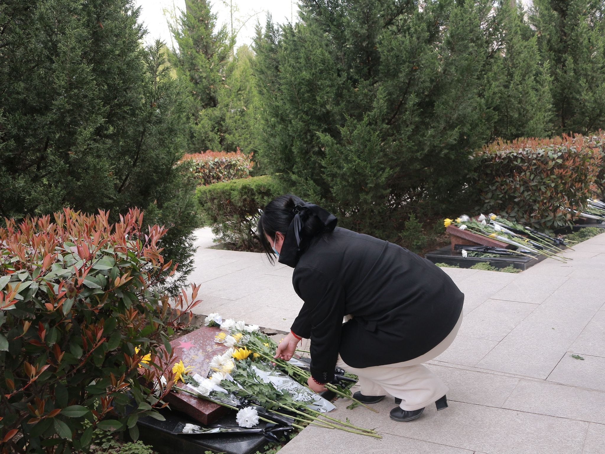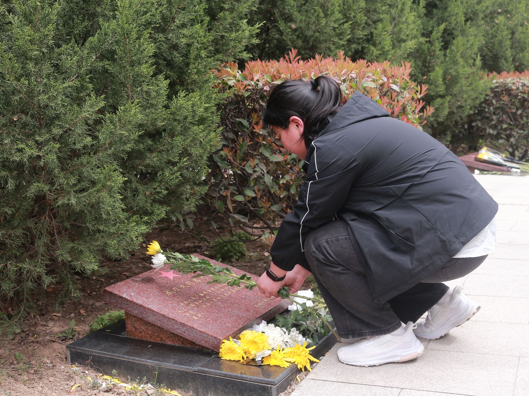 在肃穆的氛围中,我院师生代表怀着崇敬且沉重的心情,缓缓步入陵园。每个人手中,那洁白的菊花静静绽放,宛如师生们内心深处无尽的追思与敬意。师生们的脚步轻缓而沉重,眼神中满是对先烈的缅怀。他们依次走到墓碑旁,微微俯身,将手中的菊花轻轻放置,动作轻柔而虔诚。一方方碑文,上面镌刻的不仅是一段段波澜壮阔的历史,更是那些值得人们永远铭记的伟大精神。这些精神,如同一座座不朽的丰碑,激励着一代又一代的后人,在追求理想与光明的道路上,勇往直前,永不退缩 。