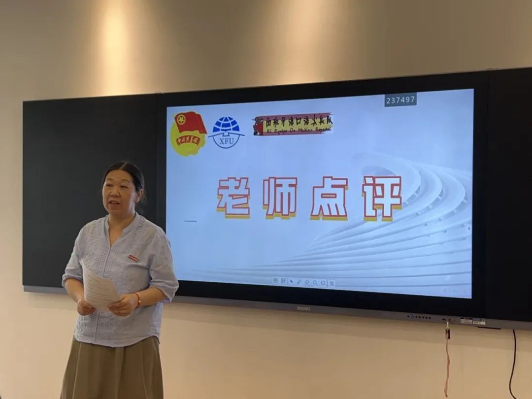 在五组选手表演完后,由赵蓓老师进行点评。赵蓓老师对每一组同学都进行了点评并指出其优点和需要改进的方面,对参与此次比赛的同学都提出表扬及鼓励。并表示希望在今后的活动中能够看到更多同学的身影以及同学们的进步和提升。