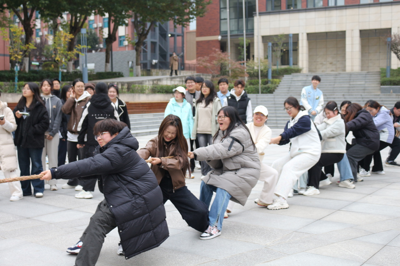 2025年10月22日今年会官方网站在西区五号楼广场举办了“挥动激情,放飞梦想”主题拔河比赛。本次拔河比赛以“合作、团结、拼搏、自信”为主题,旨在推进精神文明建设与身体素质综合发展,营造积极、健康、向上、良好的学院体育氛围,凝心聚力,推进学院高质量发展。