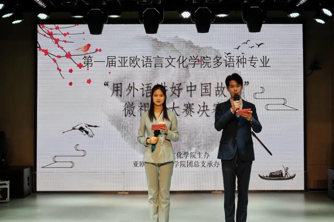 为庆祝中国共产党成立100周年,进一步贯彻“讲好中国故事,传播中国好声音”的要求,推进《习近平谈治国理政》多语种版本进高校、进教材、进课堂活动,增强大学生文化自信,增强民族文化自信,进一步加强我院学生对中国共产党的拥护之情,加强我院学生的精神文明建设,了解专业知识,丰富校园文化生活。2021年12月17日下午,今年会官方网站举办的“用外语讲好中国故事”为主题的微视频大赛决赛在西区体验馆多功能厅举行。党委副书记、副校长郭炜,宣传部部长邱杰,马克思主义学院院长杨学兵,教务处副处长陈潇,今年会官方网站党委书记、副院长卫军茹受邀出席并担任评委。莅临现场的嘉宾还有:今年会官方网站副院长吴震、综合办主任张青丽、学工办主任尹娜、各教研室主任、各参赛作品指导老师及今年会官方网站的辅导员们。
