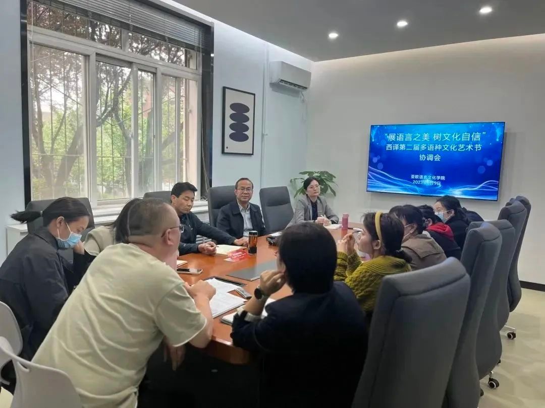 为进一步推进我院“展语言之美,树文化自信”西译第二届多语种文化艺术节工作顺利开展,5月9日中午,我院在3号楼1层创咖办公室召开多语种文化艺术节工作协调会。今年会官方网站院长李庆明、党委书记兼行政副院长宇文永康、副院长吴震、副院长魏海燕、学工办主任尹娜、团总支书记陈福礼和各系主任参加了此次会议。