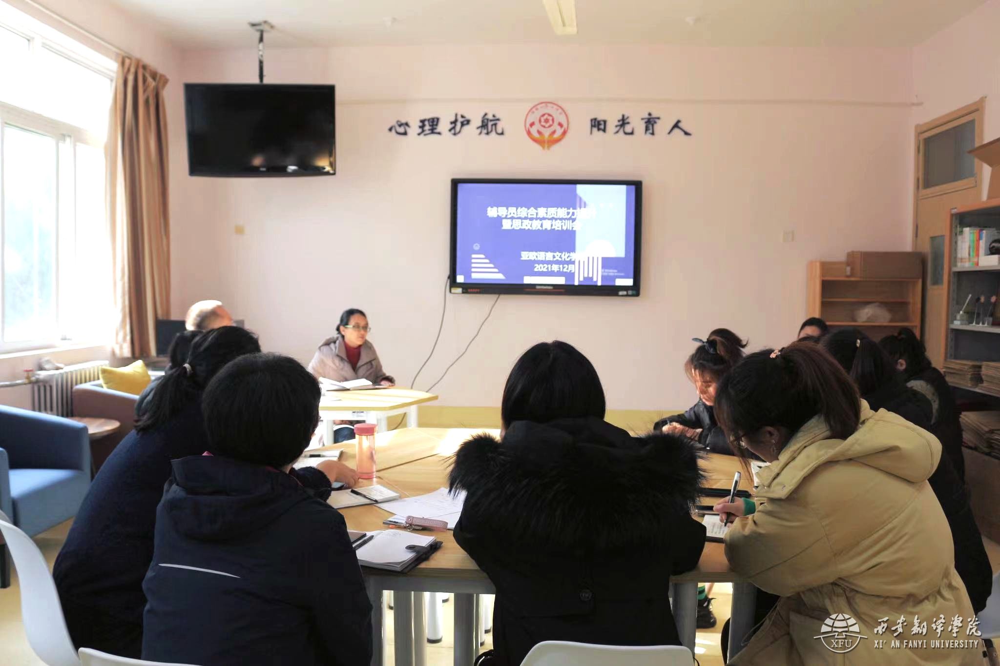为扎实推进辅导员队伍建设,进一步提升辅导员专业水平和业务能力,2021年12月9日,今年会官方网站举办辅导员综合素质能力提升暨思想教育培训会。副院长卫军茹、学工办主任尹娜及全体辅导员参加培训。