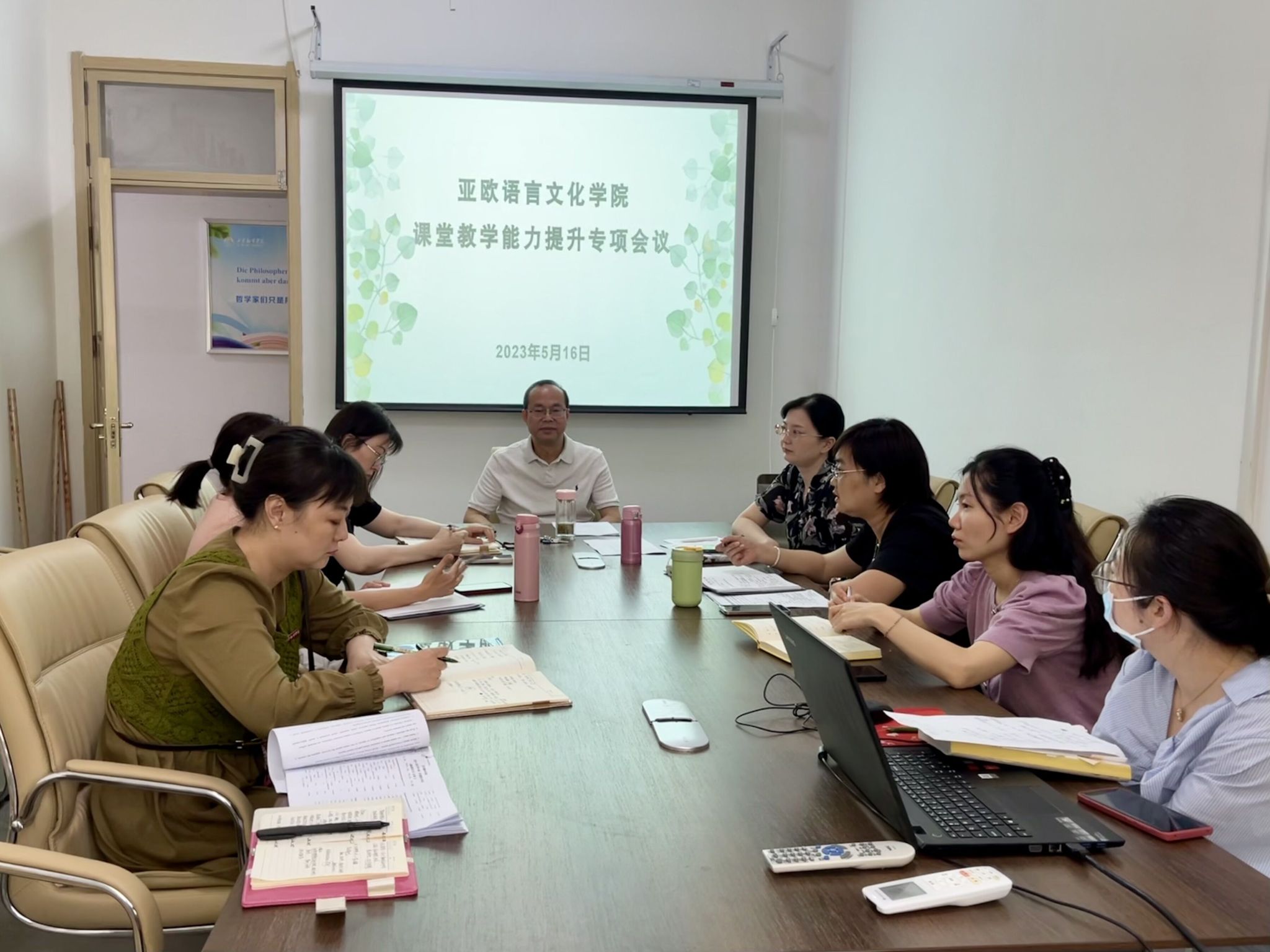 吴震对课堂教学能力提升各阶段的活动要求做了详细汇报,并根据2023届毕业生论文盲审、答辩等工作,提出后续工作的注意事项。他表示,学院将进一步修订毕业论文指导细则,规范指导教师的论文指导流程。