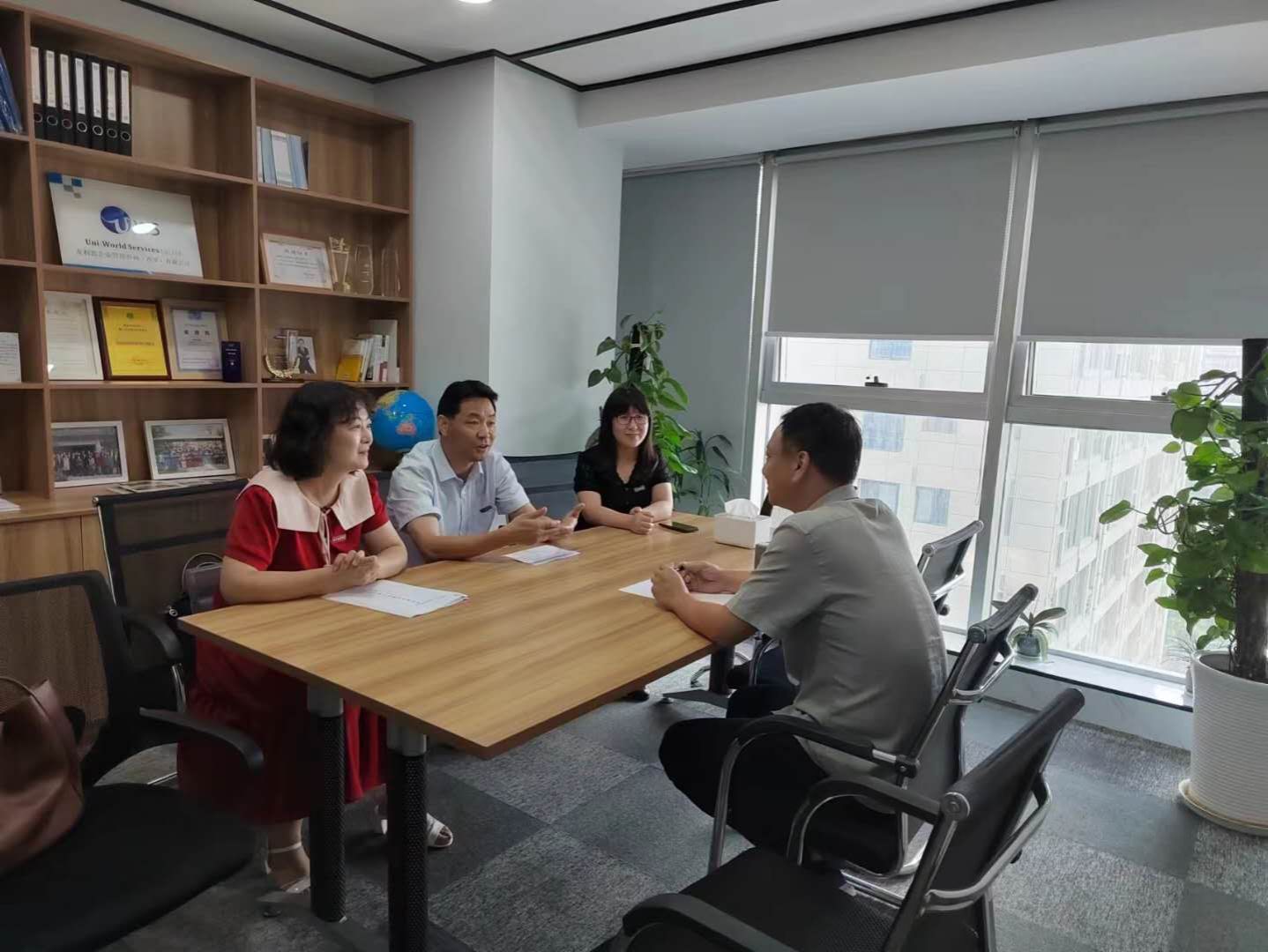 9月5日上午,今年会官方网站党委书记、副院长宇文永康,日韩系副主任邹俊秀,朝鲜语专业教师王博、秦广兰一行前往三友(陕西)建筑监理咨询有限公司(以下称三友)进行走访。