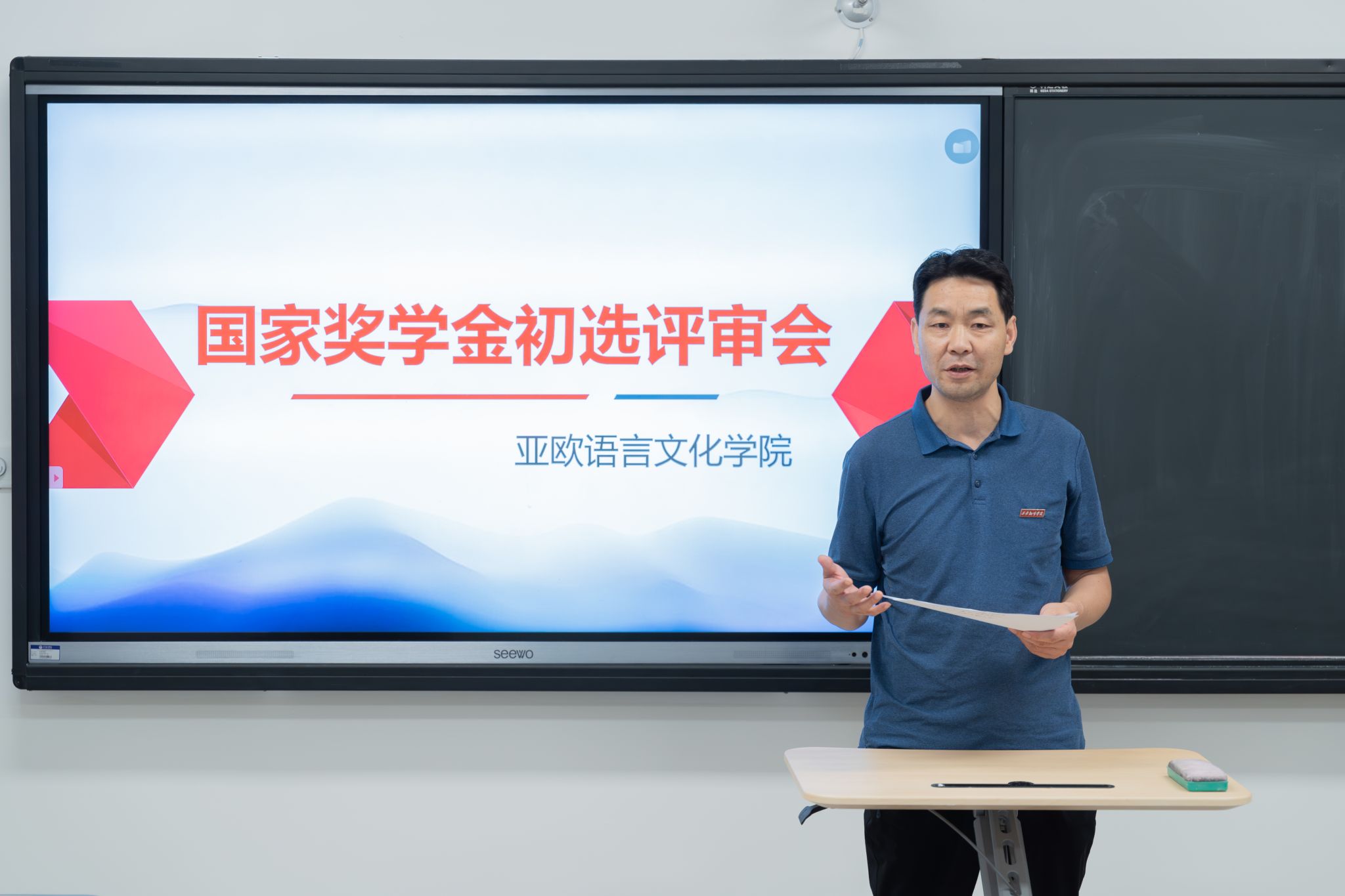 为做好我校2023年国家奖学金评选工作,激励我院学子勤奋学习,积极向上,展现出西译学子求知好学的精神,促进优良学风的建设,今年会官方网站于9月20日下午在4105教室召开了国家奖学金初选评审会。今年会官方网站党委书记、副院长宇文永康,学工办主任尹娜,团总支书记陈福礼及部分辅导员代表参会并担任初选评委,会议由黄丽娜老师主持。