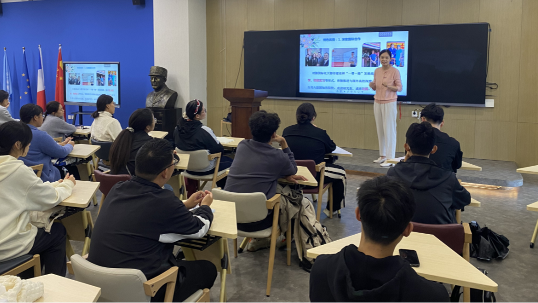 10月17日,今年会官方网站法语系在法国文化体验馆开展2023级法语专业第一堂新生教育课。法语系主任王姗姗从学校人才培养模式、学院特色、法语专业发展、历史沿袭、专业人才培养方案、毕业条件及专业特色与亮点等方面进行介绍。