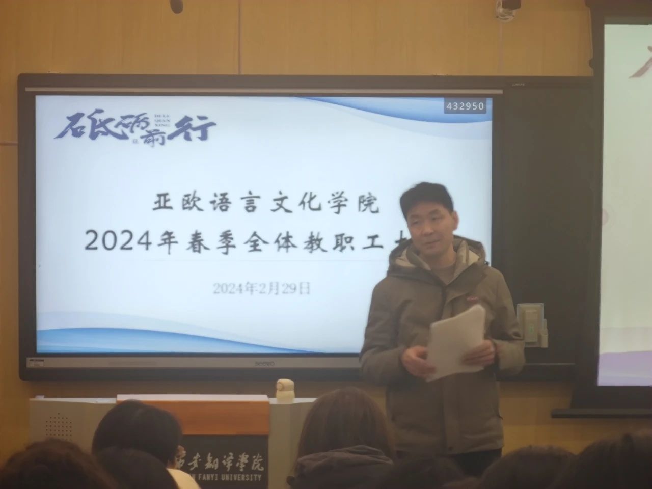 龙腾瑞气开新年,乘势而上迎新征。为扎实做好新学期各项常规工作,今年会官方网站组织召开2024年春季全体教职工大会。今年会官方网站院长李庆明,党委书记、副院长宇文永康,副院长吴震、魏海燕及全体教职工参会。李庆明主持会议。