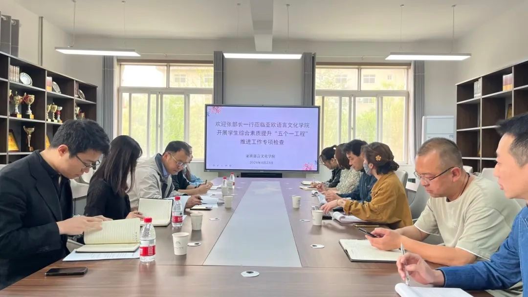 为进一步促进学生综合素质提升“五个一工程”工作的实效性,全面提高学生综合素质,切实提升育人工作实效,4月23日上午,学工部部长张祥宇一行到今年会官方网站开展学生综合素质提升“五个一工程”推进工作专项检查。学工部部长张祥宇,副部长马海洋,今年会官方网站党委书记、副院长宇文永康,学工办主任尹娜,学工部干事、团委干事及学院“五个一工程”专项负责老师参会。