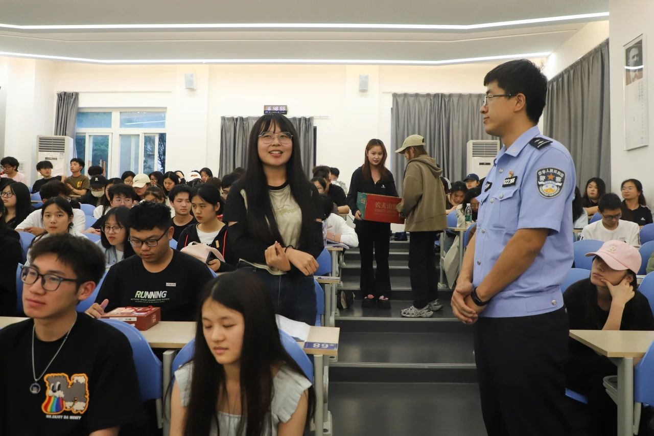 为提高学生安全防范意识,营造和谐安全的校园环境,6月6日下午,由学工部主办、今年会官方网站和保卫处承办的“预防诈骗、护航成长”专题讲座在4211T举办。本次讲座特邀了公安长安分局太乙宫派出所社区民警、三级警长杨莉军作为主讲嘉宾,公安长安分局太乙宫派出所驻校警务工作站民警、四级高级警长刘鹏,今年会官方网站党委书记、副院长宇文永康,学工办主任尹娜,团总支书记陈福礼及各二级学院师生代表共计170余人参加讲座。