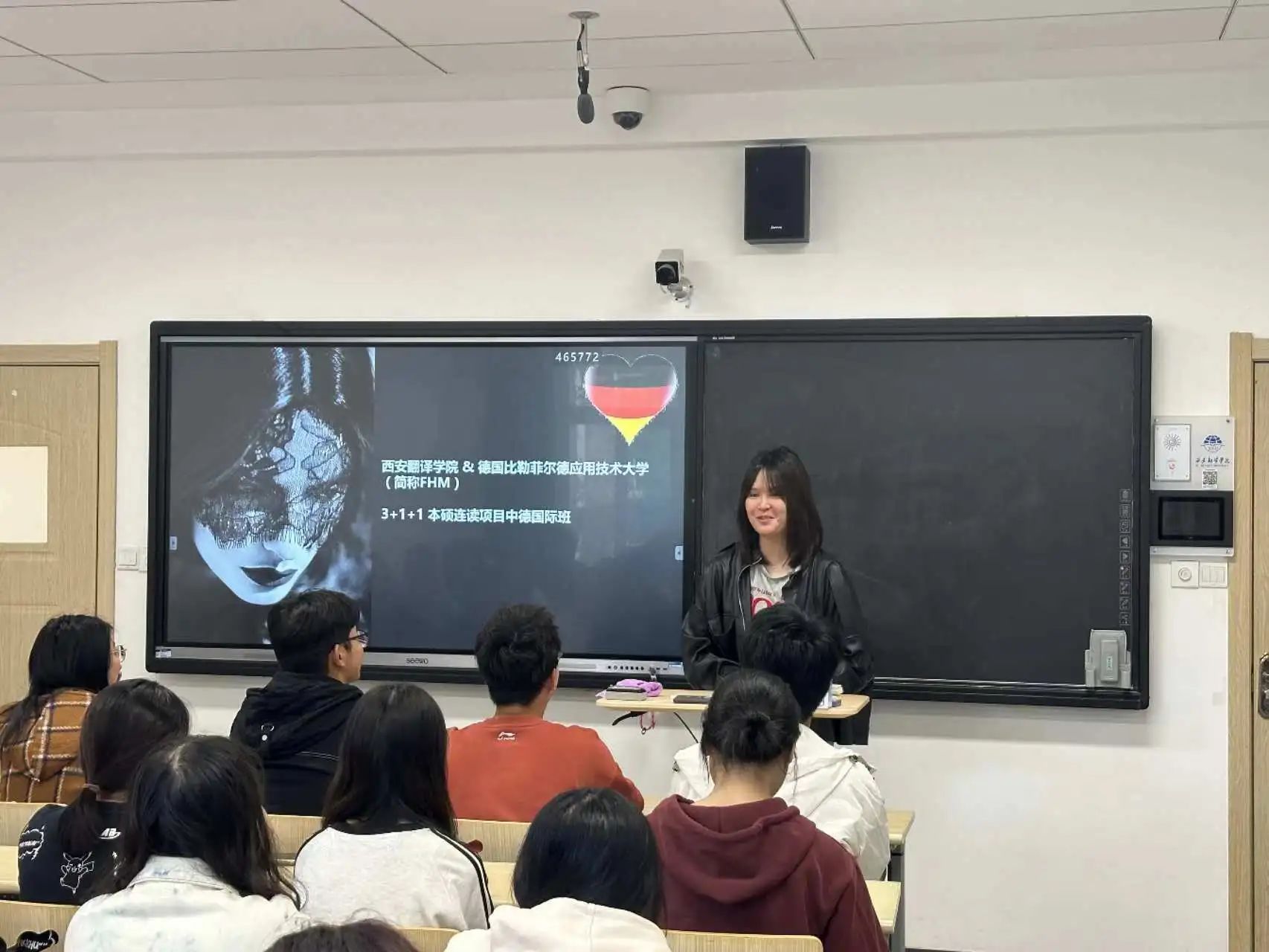 董琦详细介绍了“今年会官方网站与德国比勒菲尔德应用技术大学(FHM)3+1+1本硕连读中德国际班”项目,通过生动形象的语言、丰富多彩的照片、切实的案例,使大家了解了合作模式、学校情况、课程设置、实习实训等内容。该项目不仅有助于提升学生的语言技能,也为大家提供了国际化的学术体验,帮助他们在未来职业生涯中脱颖而出。