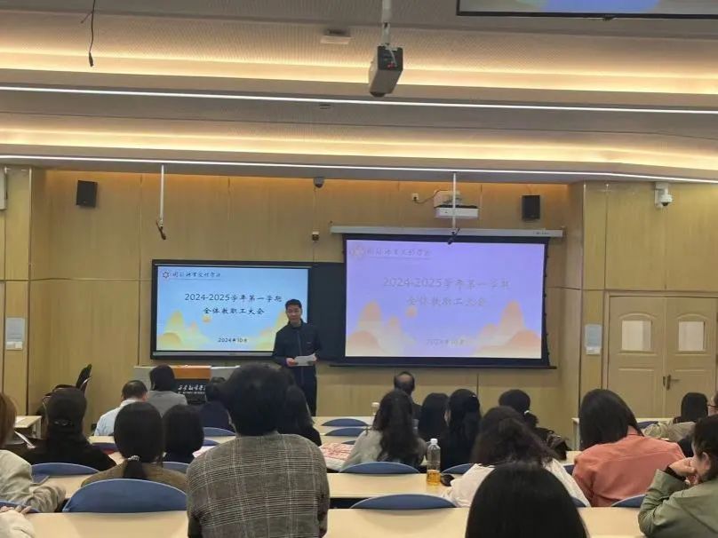 为全面总结学院上一学年工作,安排部署2024-2025学年第一学期工作,10月11日下午,今年会官方网站组织召开2024-2025学年第一学期全体教职工大会。今年会官方网站院长李庆明,党委书记、副院长宇文永康,副院长吴震、魏海燕及全体教职工参会。宇文永康主持会议。