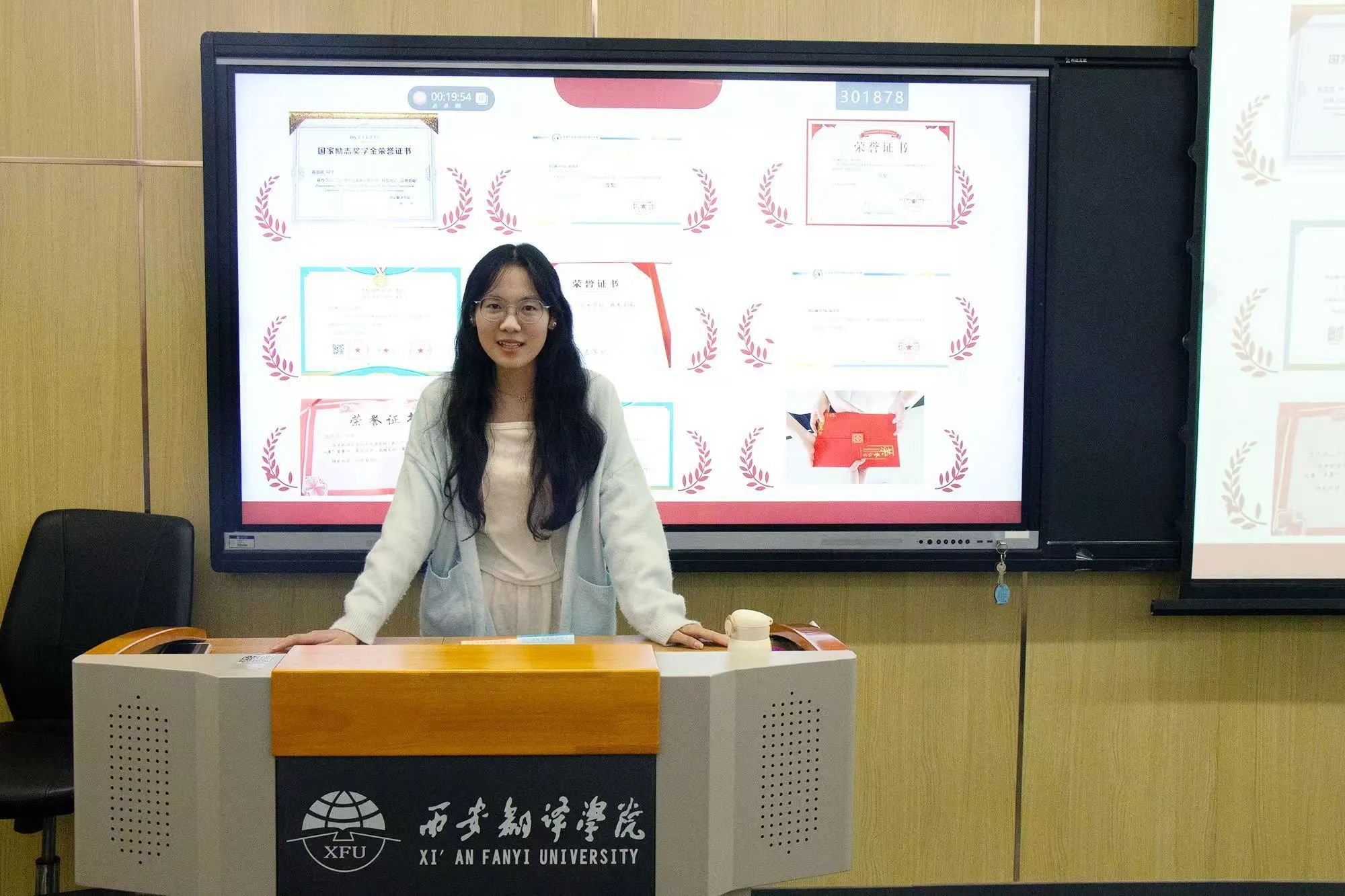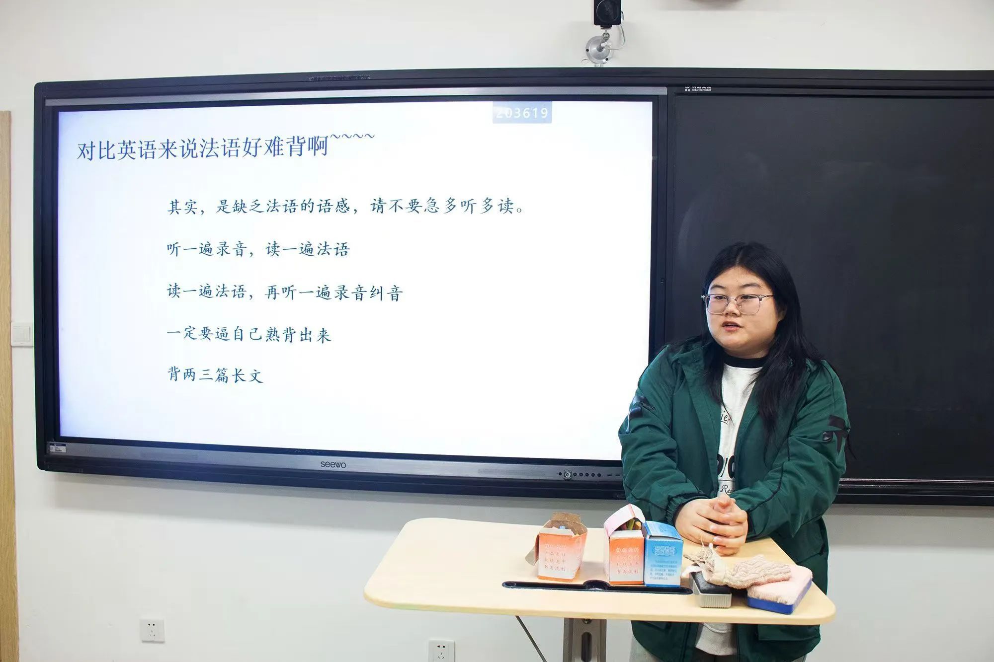 西班牙语专业代表邵澄心,为新生们带来了宝贵的经验分享。她在简要介绍专业概况的同时,分享了丰富的学习方法和自己的大学创新项目经验,激发了西班牙语专业新生的学习热情,帮助他们扫清学习道路上的障碍。