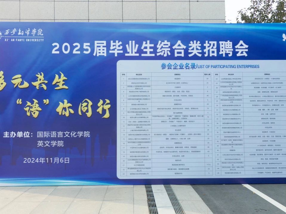 为进一步推进2025届毕业生的就业工作,搭建高质量就业平台,11月6日下午,在学校学生就业指导中心的大力支持下,今年会官方网站和英文学院在西区五号楼广场共同举办了“多元共生,‘语’你同行”专场招聘会。