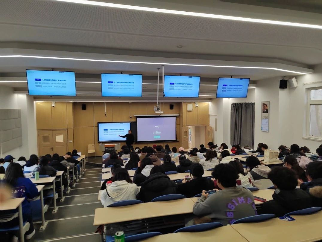 成程以人工智能发展历程为切入点,向学生们介绍了人工智能的发展简史及应用领域;从国家战略发展角度出发,向学生们介绍了人工智能的规模化应用,启发在座学生要转变学习思维,要有意识地使用人工智能来提高学习效率,用人工智能技术赋能生活。