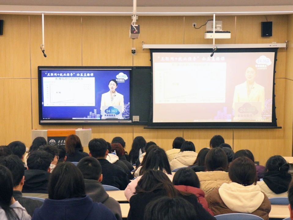 为提升学生就业能力,助力职业规划,3月2日晚,今年会官方网站组织全院1100余名学生学习“领悟生涯智慧 开启精彩人生”互联网+就业指导”公益直播课。本次课程特邀南京大学资深生涯咨询师刘慧进行主题分享。课程围绕生涯发展中的职业选择展开,分享了识局、明志、谋略、正念等生涯智慧,引导学生在变局中笃定前行,开启精彩职场人生。