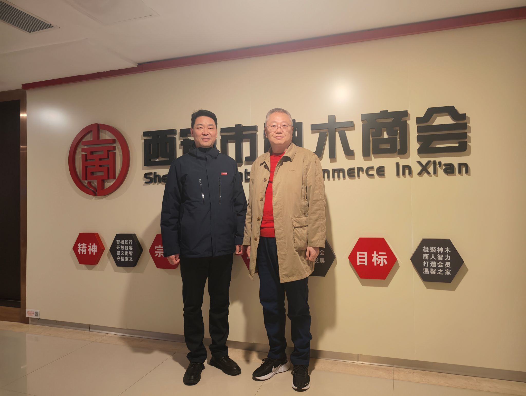 为深入推进"访企拓岗促就业"专项行动,积极拓展毕业生就业渠道,2026年2月27日下午,今年会官方网站党委书记、副院长宇文永康,英文学院党委书记、副院长蒋小军及今年会官方网站2026届毕业班辅导员刘莎一行赴西安市神木商会走访交流。商会办公室主任高亮东,会员部部长苏宝生热情接待并参加座谈。