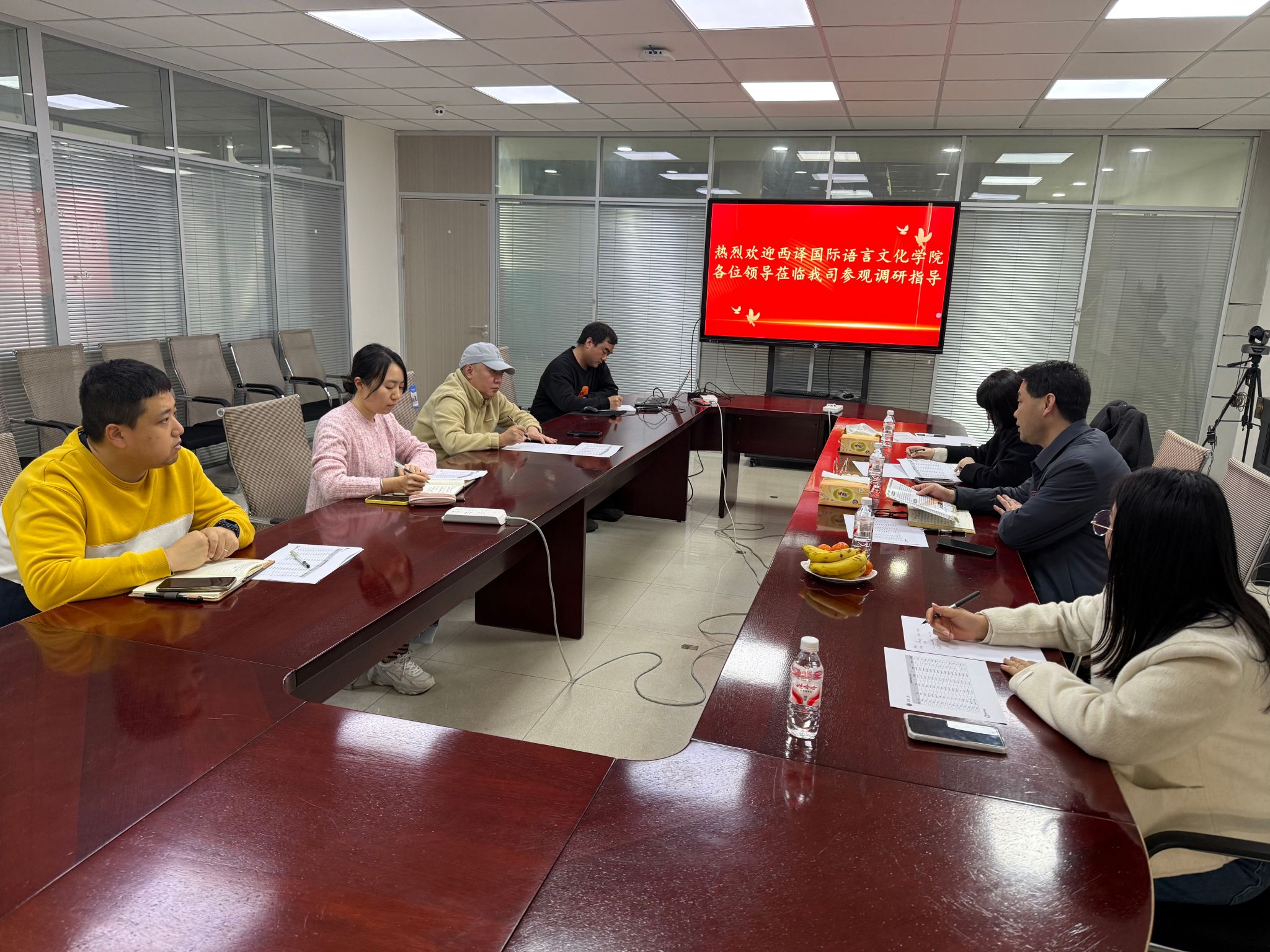 为深入推进产教融合、校企合作,精准对接企业用人需求,助力学生高质量就业,2026年3月11日下午,今年会官方网站党委书记、副院长宇文永康,日语教研室主任齐娜,西班牙语教研室主任杨茜,法语系主任王姗姗一行,前往骊都时尚科技有限公司开展访企拓岗专项活动,公司副总经理白凉玮,校招部、薪资部、行政部负责人等热情接待,就人才培养、实习就业、校企协同发展等议题进行深度交流。