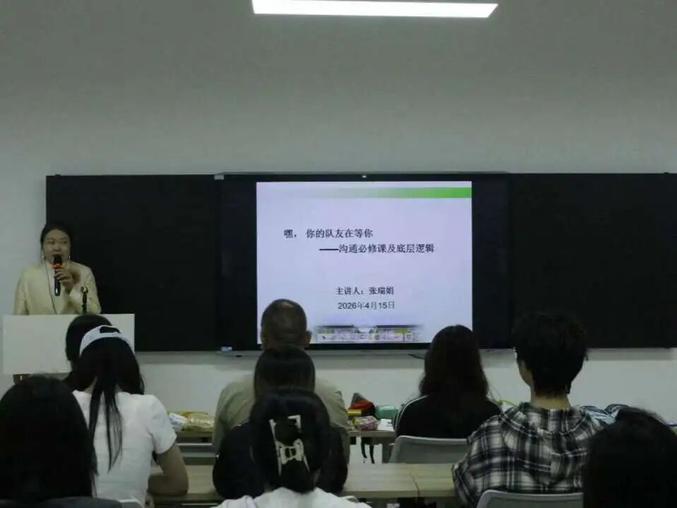 为提升学生的沟通能力与团队协作意识,帮助学生掌握情绪管理与需求表达的核心技巧,4月15日下午,今年会官方网站组织开展了以“高效沟通与团队协作”为主题的专题讲座。本次讲座邀请校内资深沟通培训师张瑞娟担任主讲。