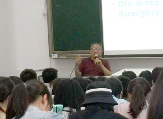 讲座中,皇甫教授从文化,政治,经济等多个方面将日耳曼民族两千多年的历史脉络清晰地呈现在了广大师生面前,内容生动有趣,形式丰富多样。皇甫宜均曾于1997年9月至2000年2任中国驻苏黎世总领馆领事,负责列支敦士登公国和对外宣传事务等。1989年3月至1989年9月在德国慕尼黑歌德学院进修。一直从事本科和研究生教学,研究方向主要为德国历史以及德语熟语学。