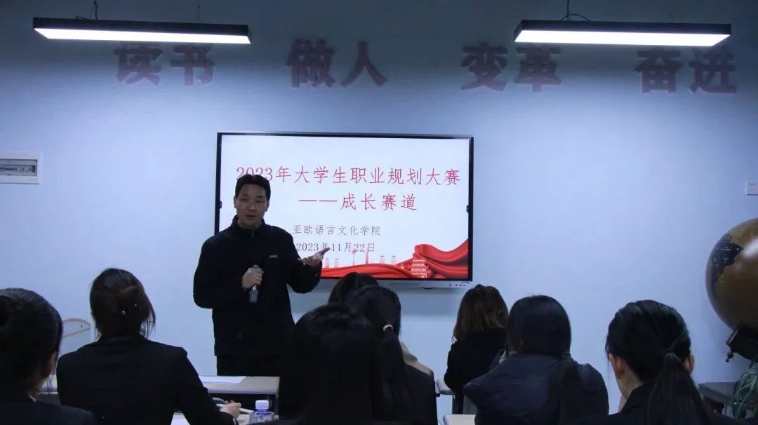 宇文永康在赛前动员讲话时指出。作为新时代有担当的大学生,职业生涯规划需建立在自我认知的基础之上,彰显出大学生作为国家栋梁的精神面貌。他希望,同学们能够在职业生涯规划的过程中找到个人发展方向,珍惜大学校园提供的成长发展平台,珍惜时光,珍惜机会,不断强化自身的专业素养及专业能力,以大赛为引导,增强规划意识,实现以赛促学,提升自身综合素质。鼓励同学们要朝着自身规划的目标努力前行,掌握理论知识的同时充分结合专业技能,更加清晰地明确自己的职业规划。